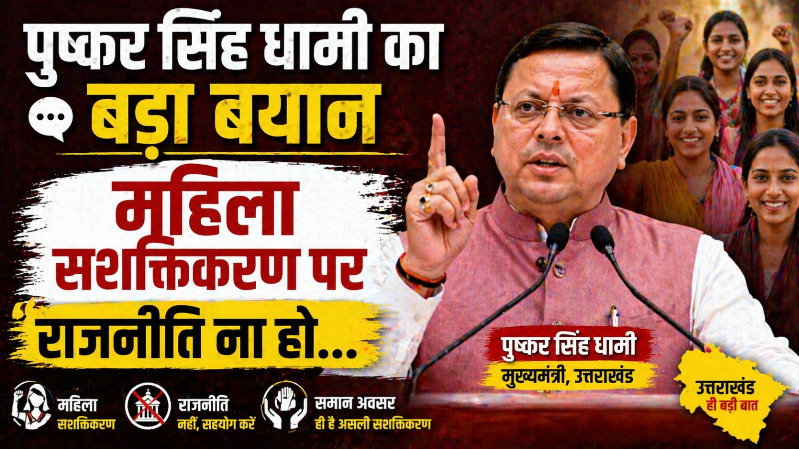 पुष्कर सिंह धामी का बड़ा बयान महिला सशक्तिकरण पर राजनीति ना हो…